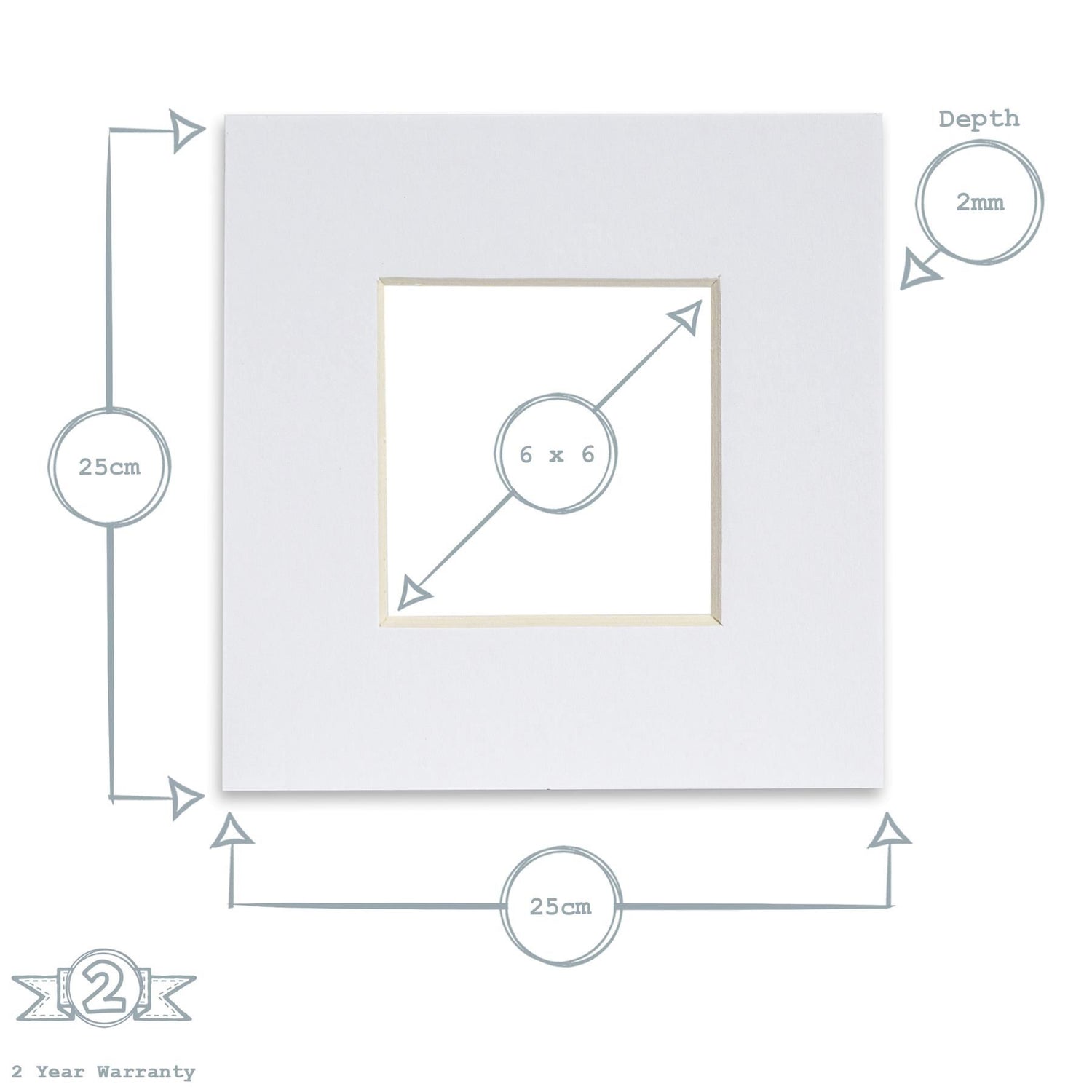 • Dimensions: Fits Frames: 10 x 10 inches Aperture: 6 x 6 inches Width: 25cm Depth: 0.5cm Height: 25cm