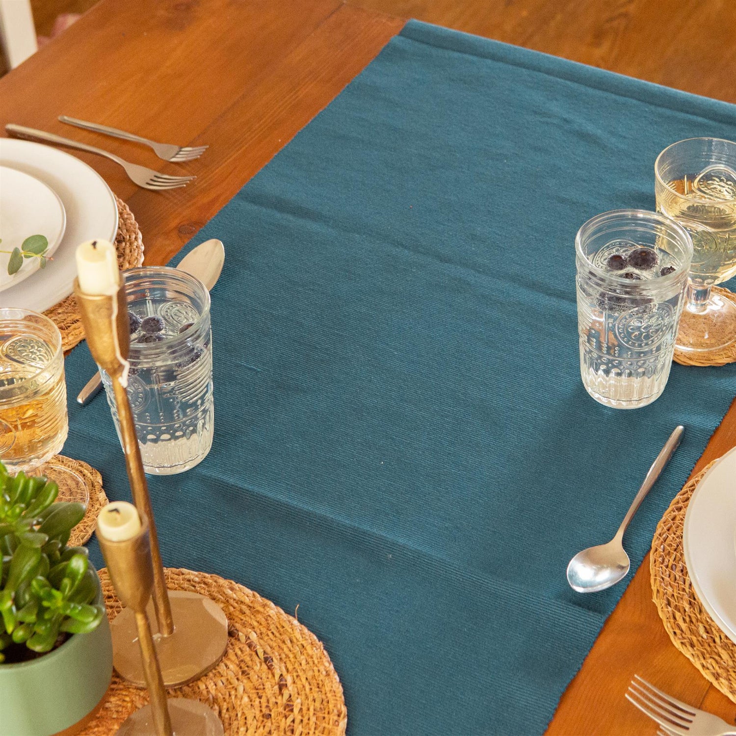 Add a splash of colour and a decorative flourish to your dining table with this Ribbed Cotton Table Runner from Nicola Spring.
