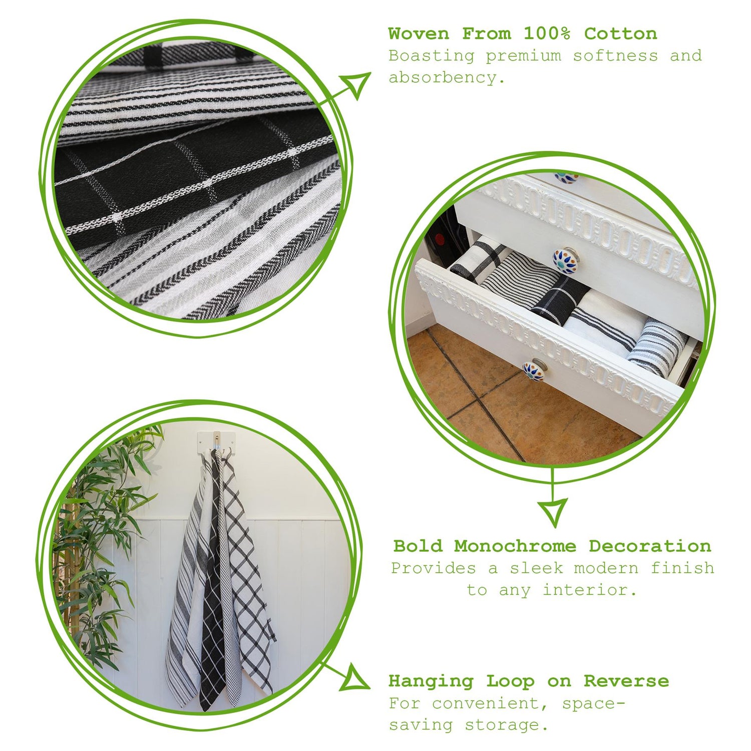 5pc Monochrome Cotton Tea Towel Set - 70cm x 50cm - By Nicola Spring