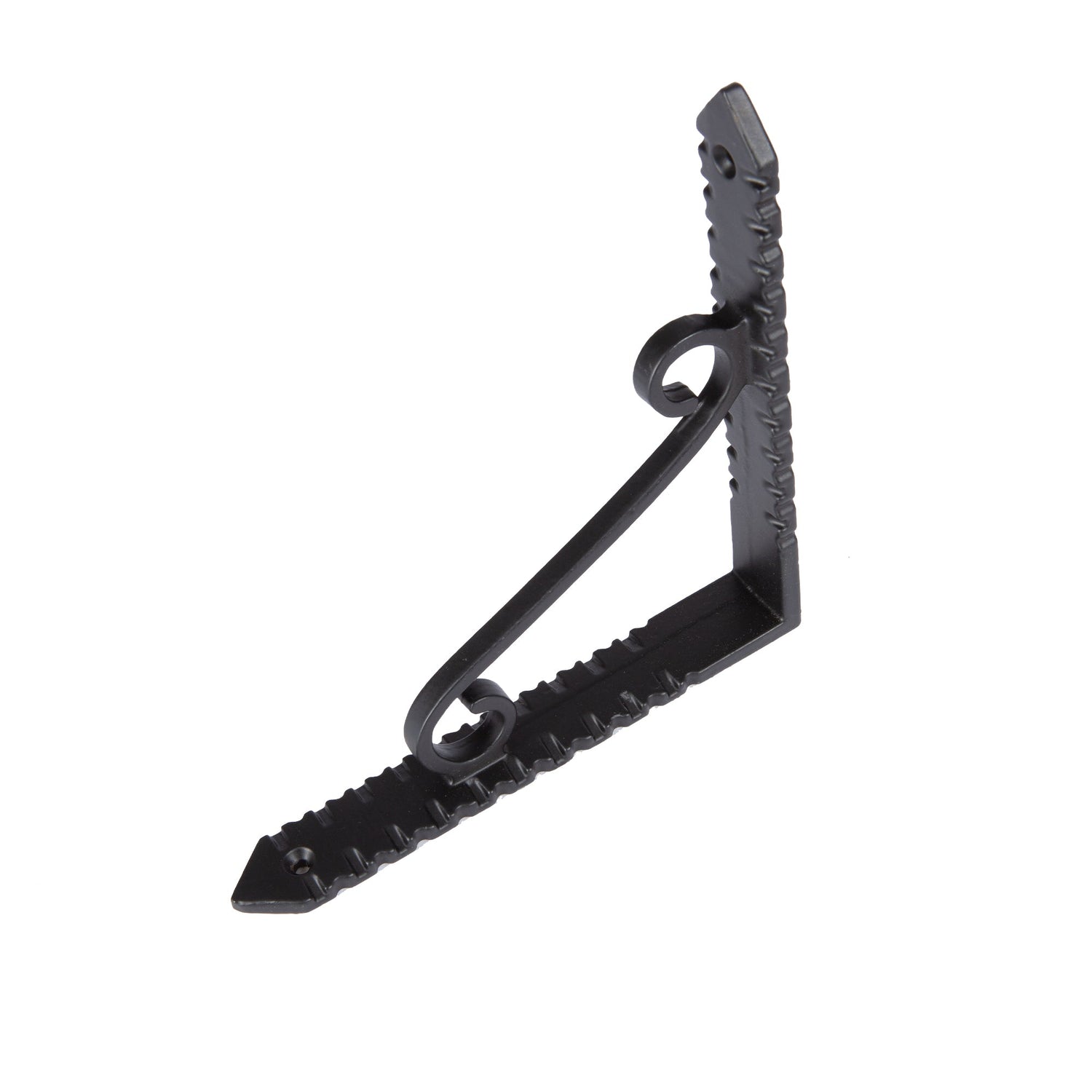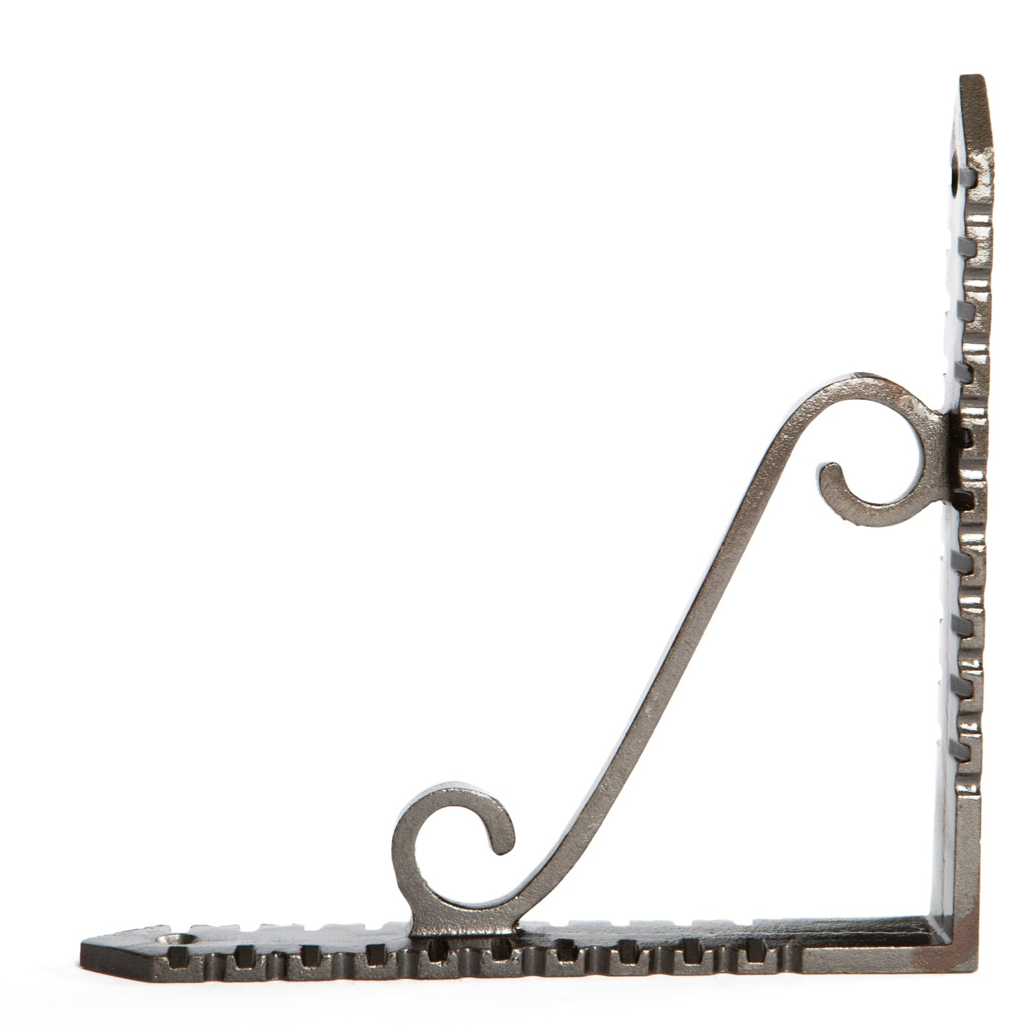 Bring timeless charm and character to your walls and storage spaces with our Hammer & Tongs Notched Scroll Iron Shelf Bracket.