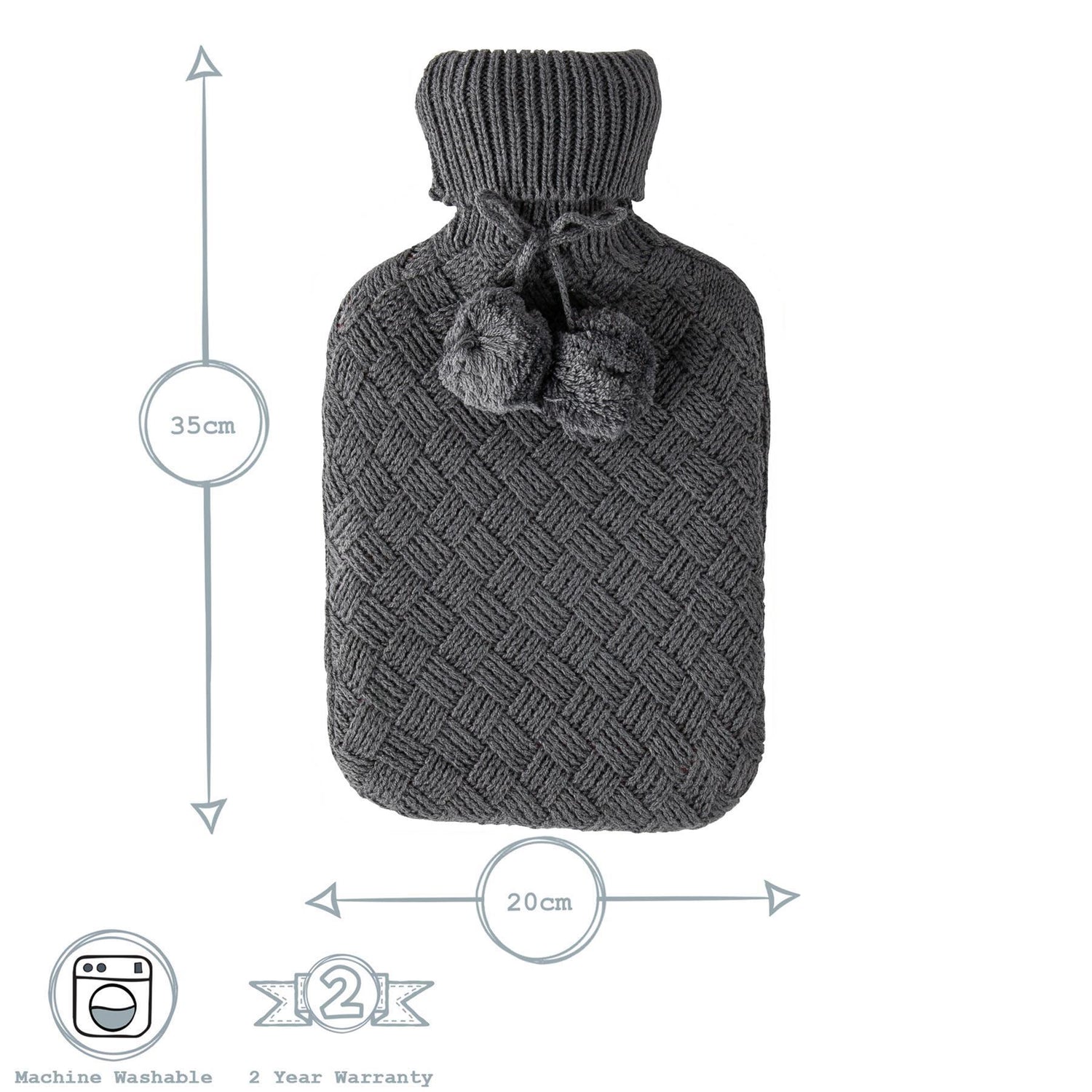 Nicola Spring Hot Water Bottle Cover - Knitted - Dark Grey