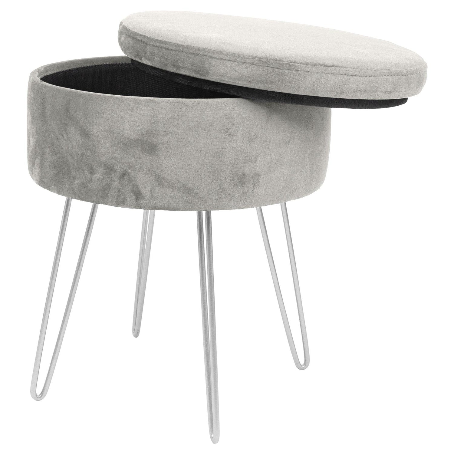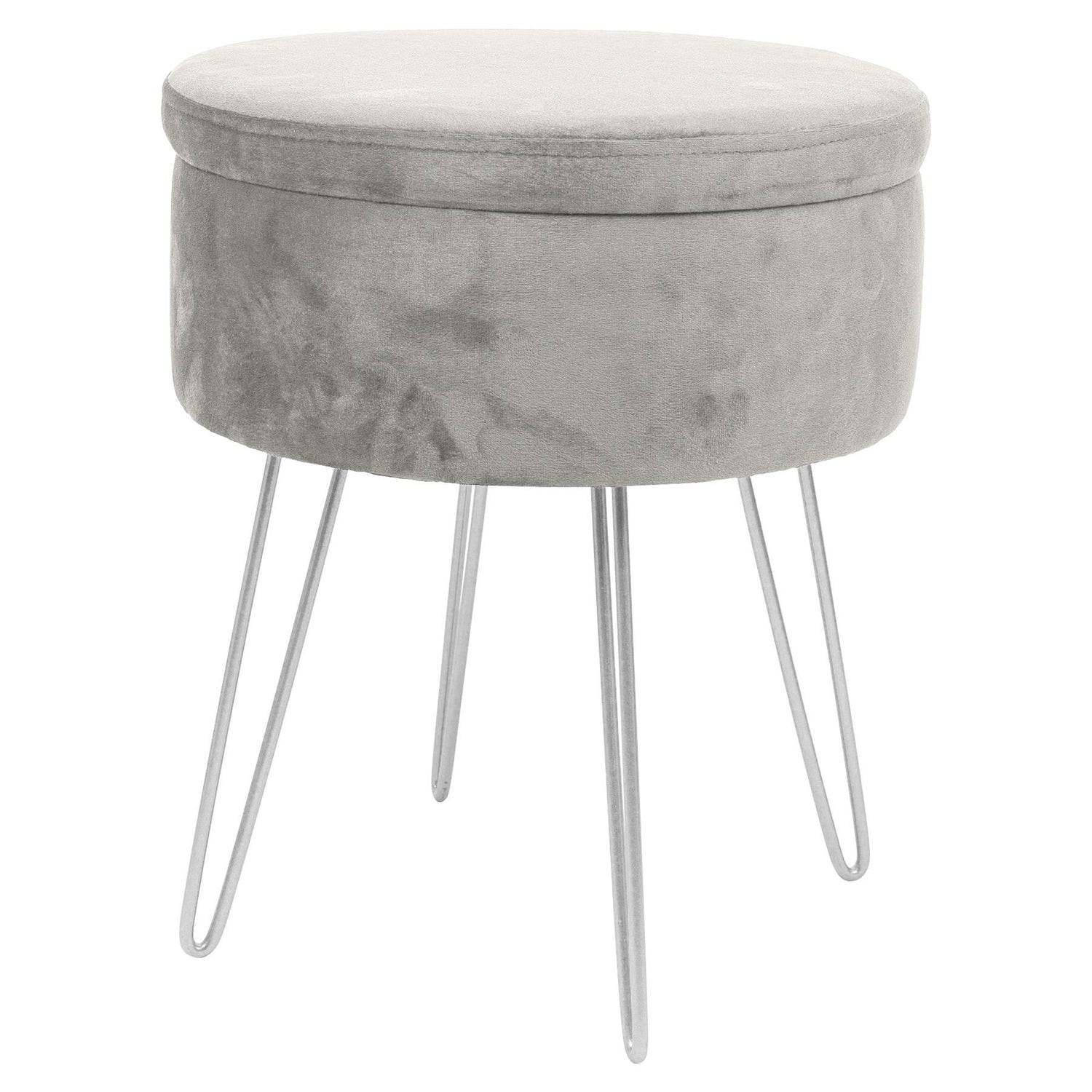 Grey H45 x D36cm Round Velvet Storage Footstool