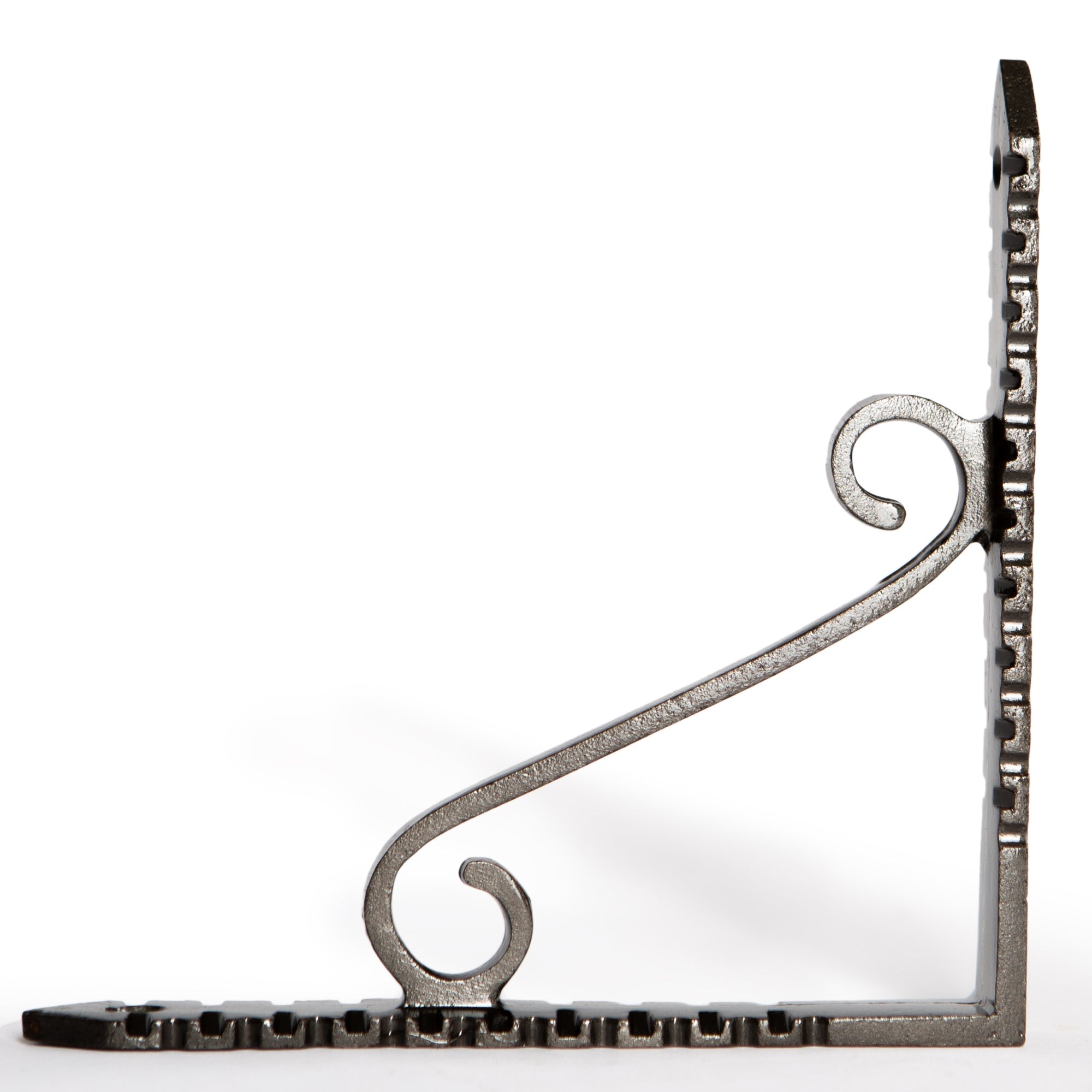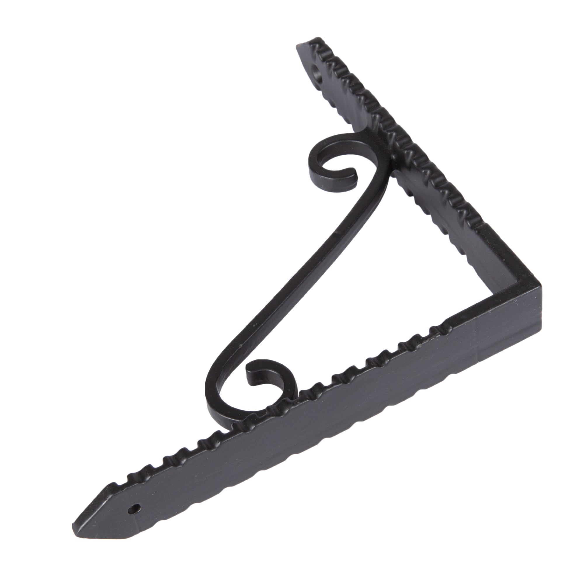Bring timeless charm and character to your walls and storage spaces with our Hammer & Tongs Notched Scroll Iron Shelf Bracket.
