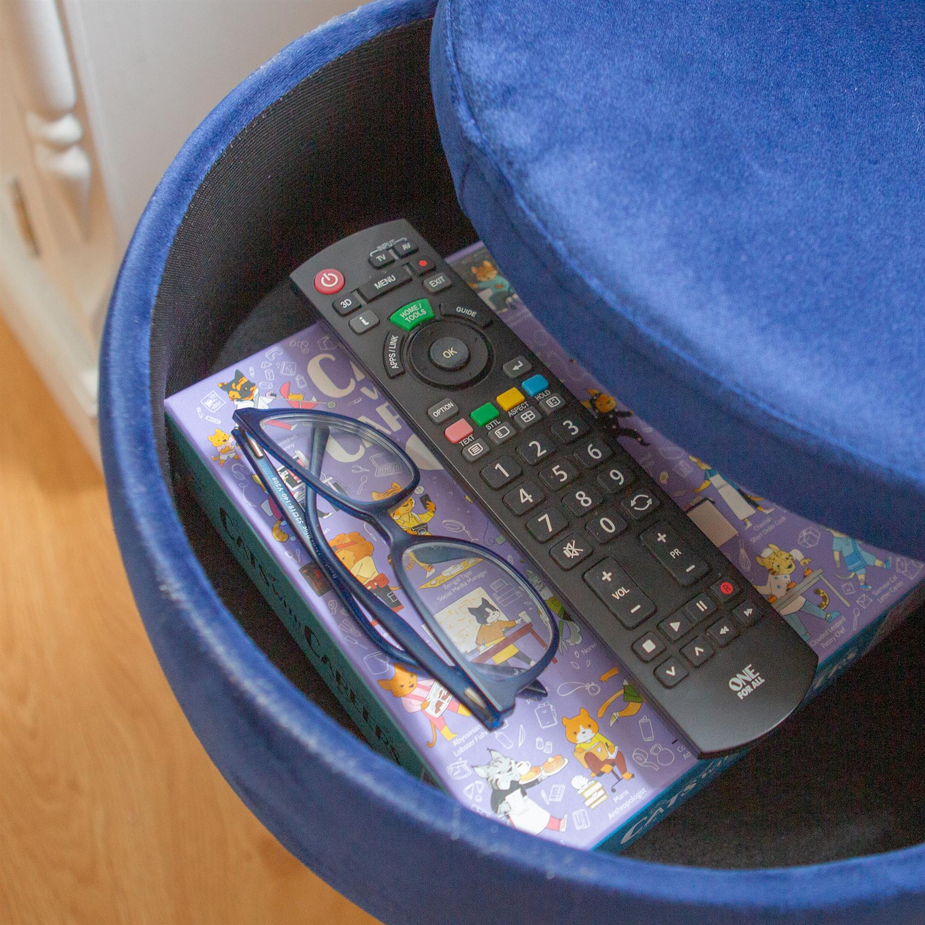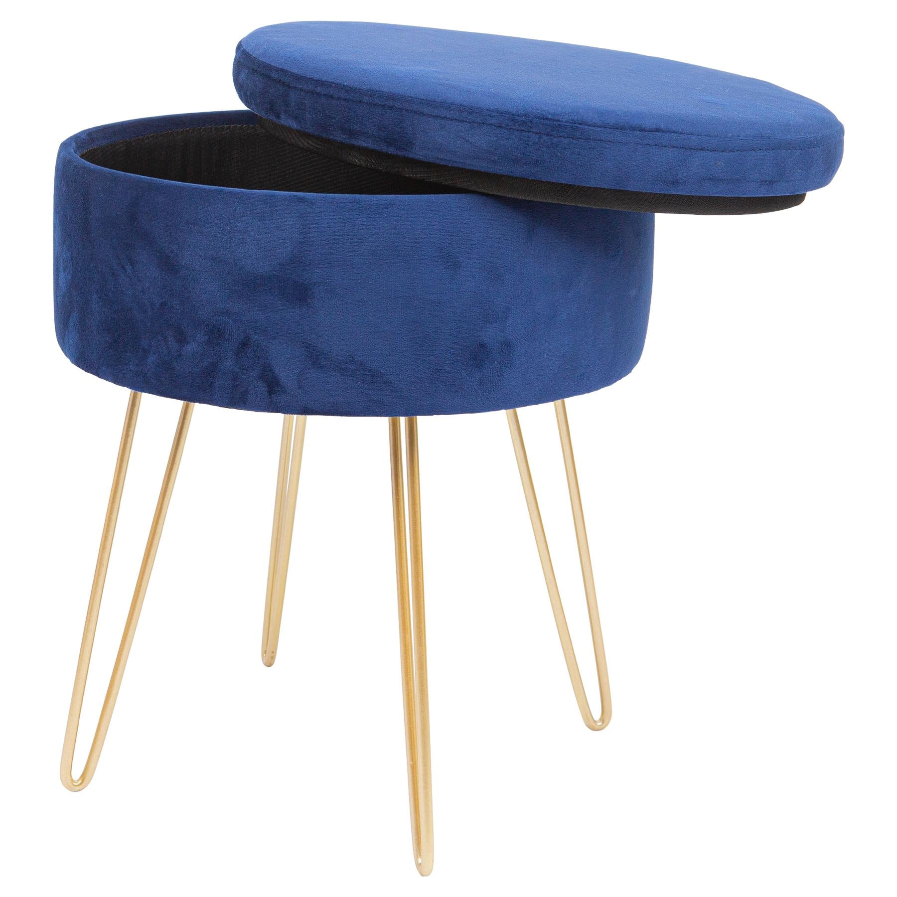 Blue H45 x D36cm Round Velvet Storage Footstool