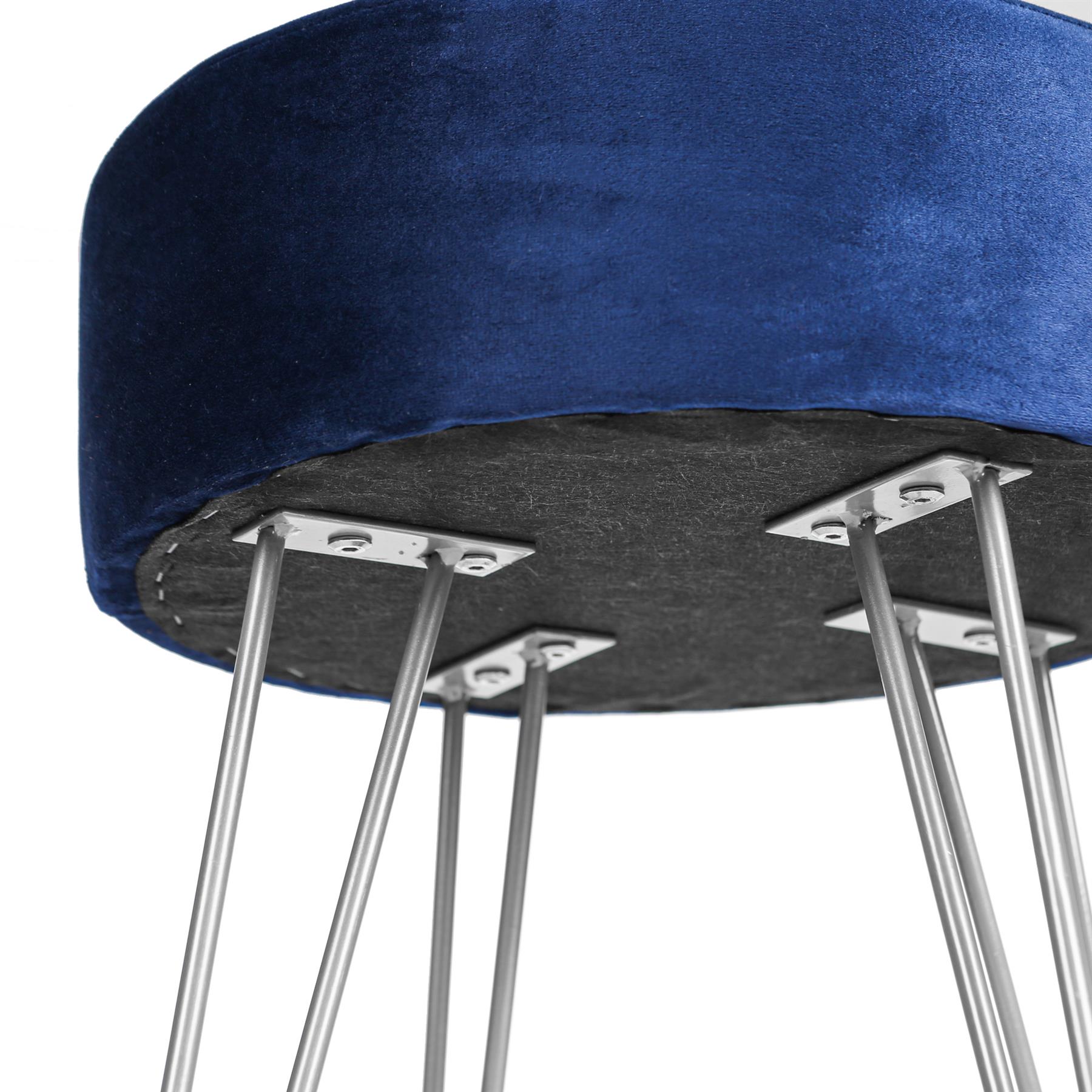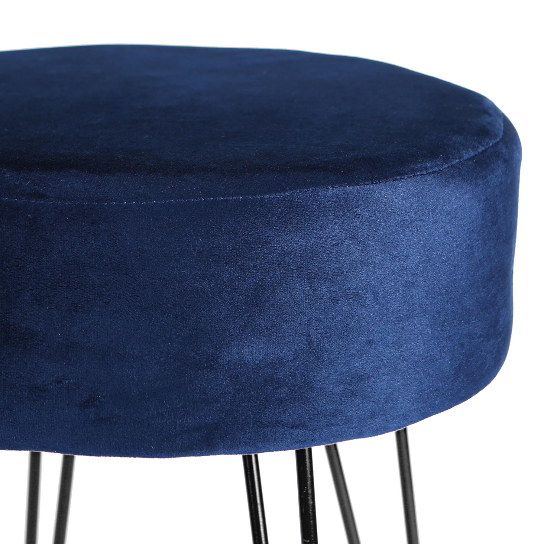 Blue Round Velvet Footstool
