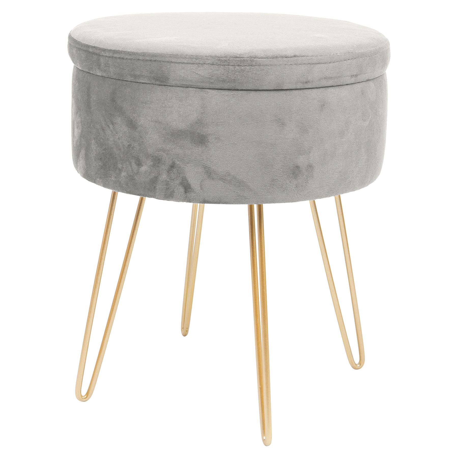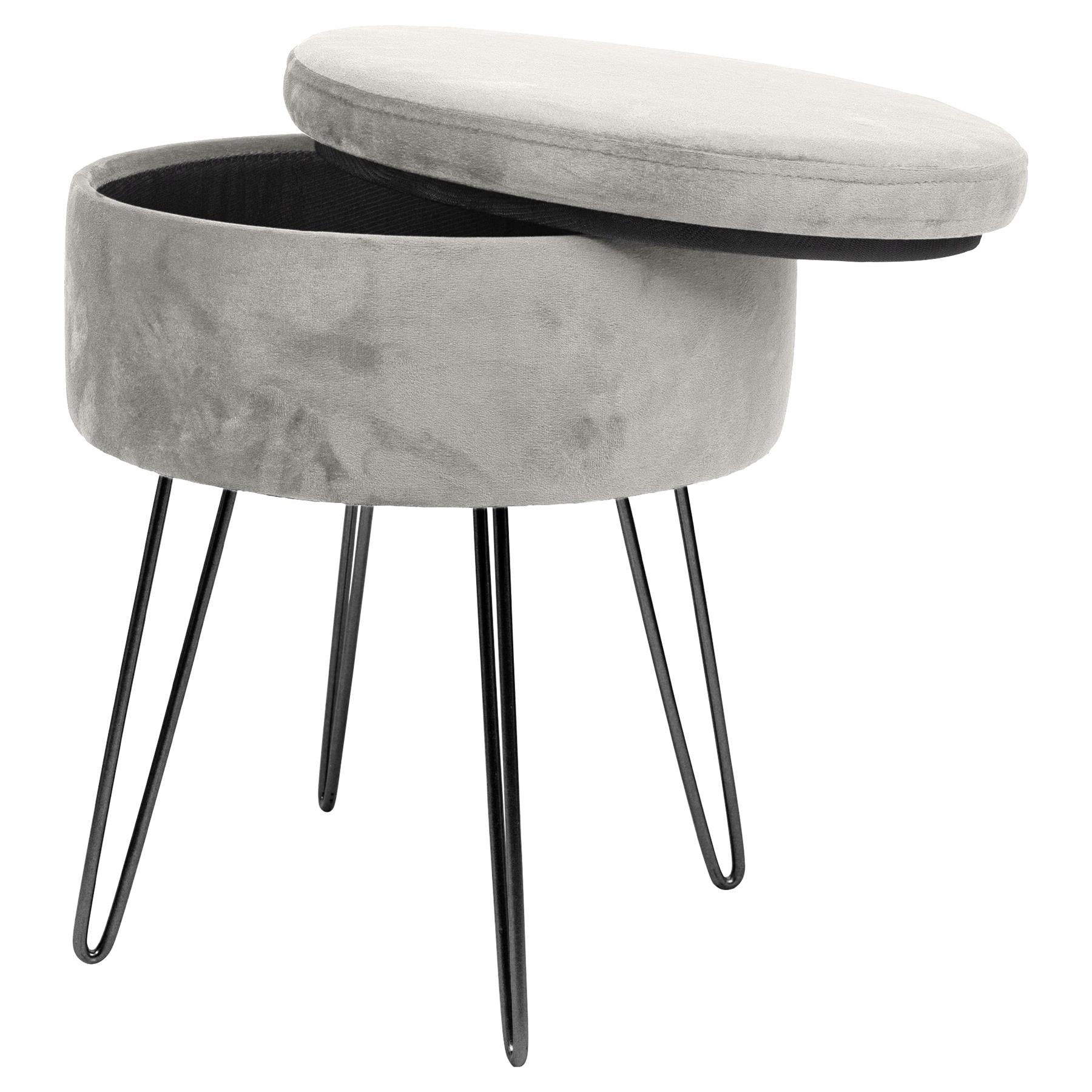 Grey H45 x D36cm Round Velvet Storage Footstool