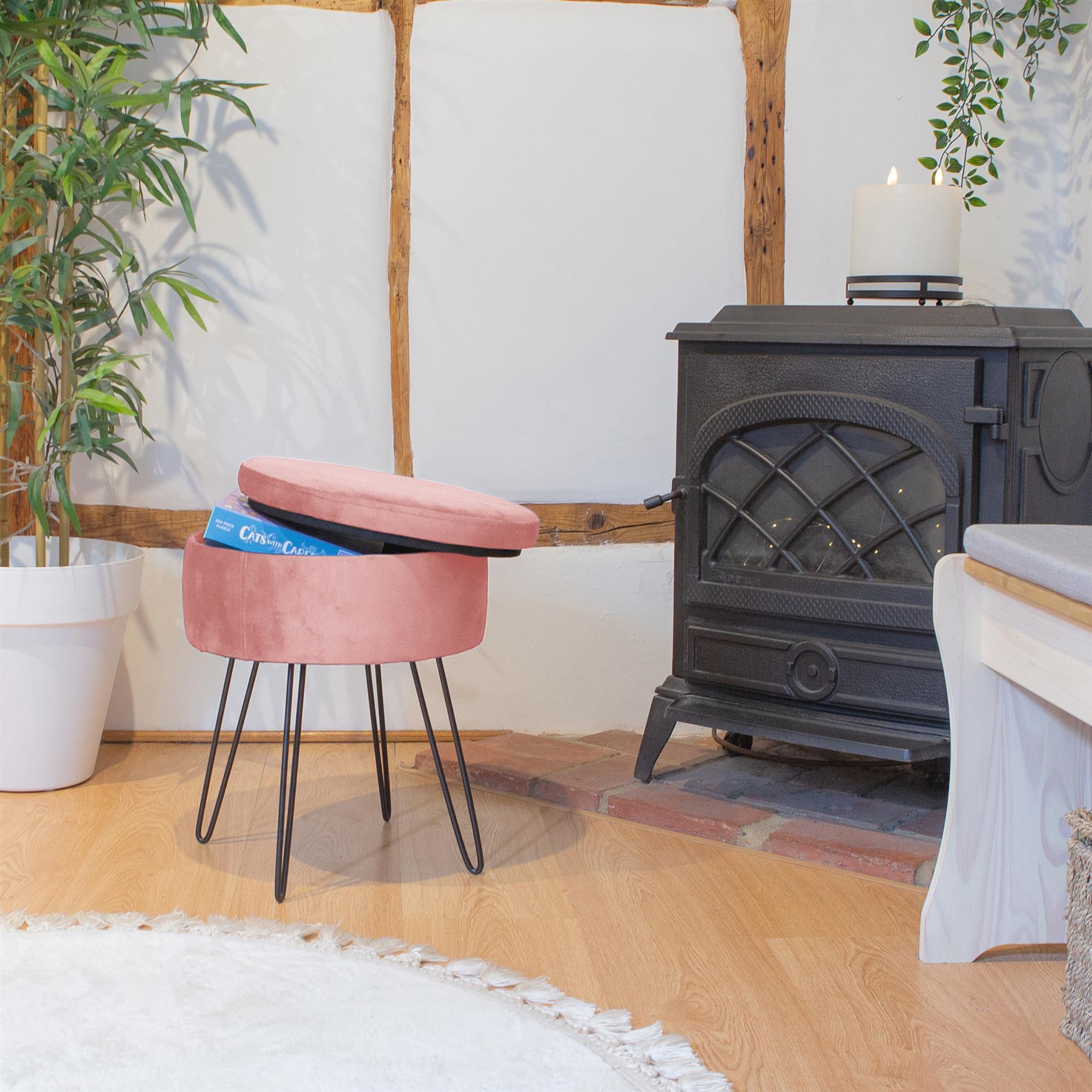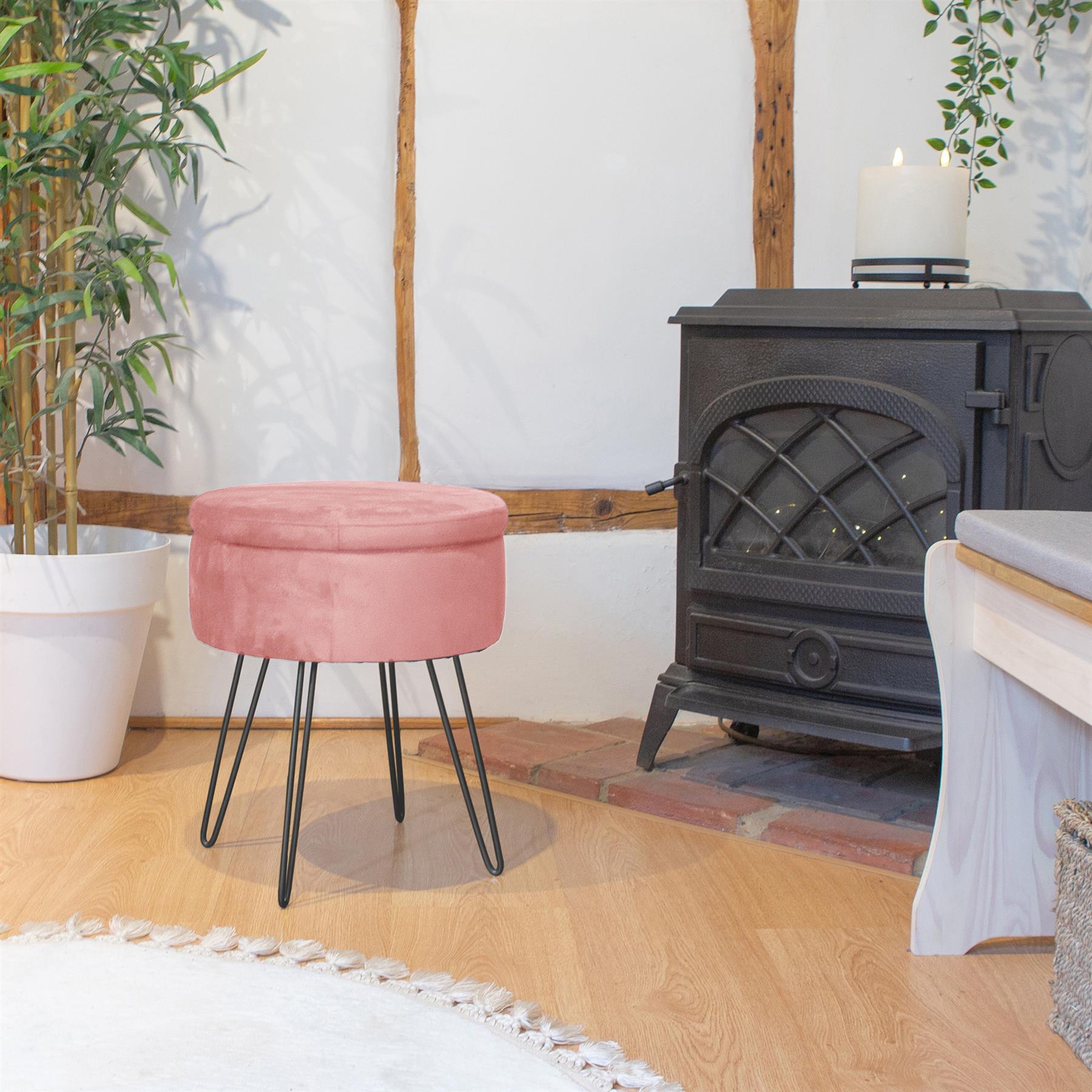 Pink H45 x D36cm Round Velvet Storage Footstool