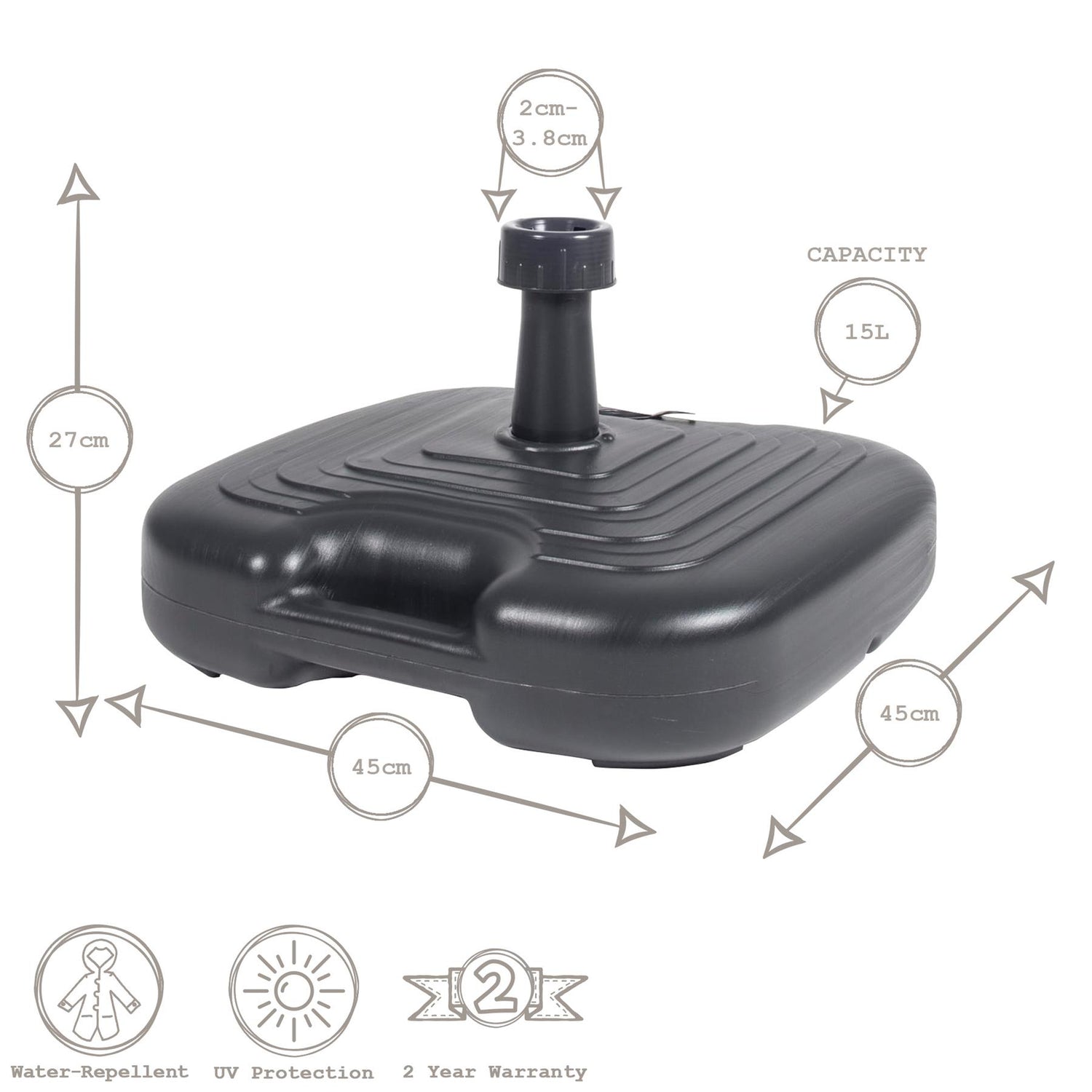 • 15 Litre Capacity - Easily fill with either sand or water for stability and support