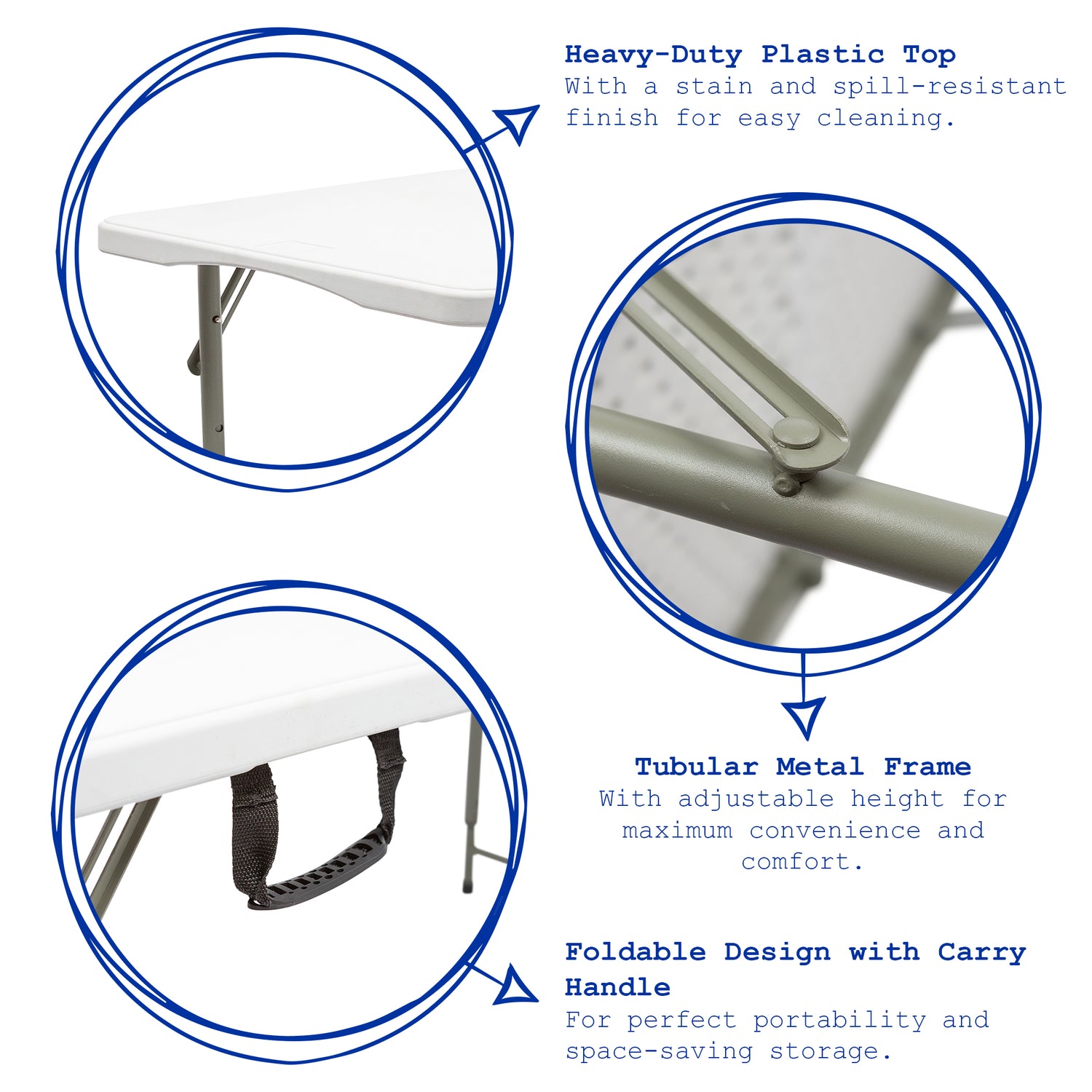 • Heavy-Duty Plastic Tabletop - With a stain and spill-resistant finish for easy cleaning