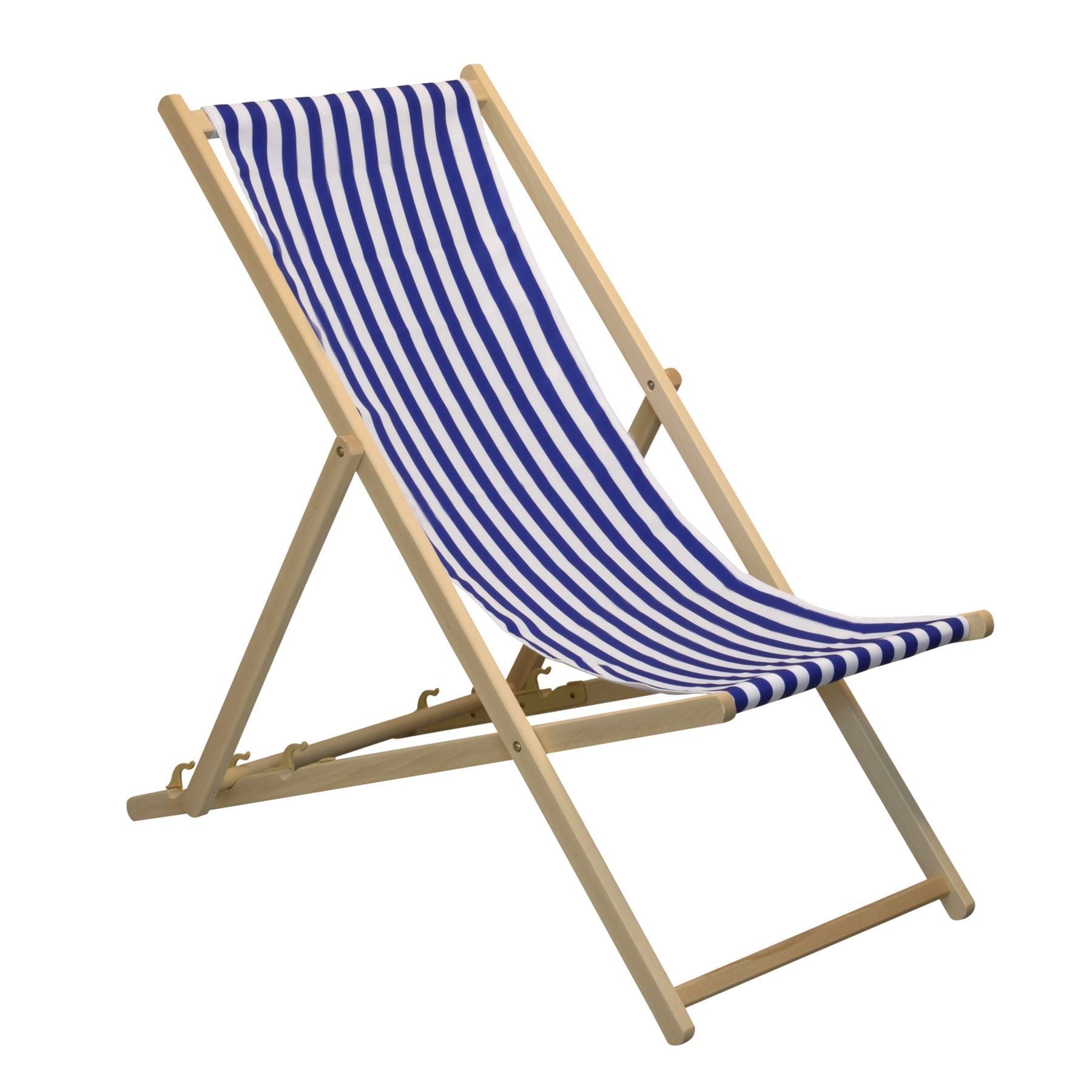 Harbour Housewares Beach Deck Chair - Blue/White Stripe with Beech Wood Frame