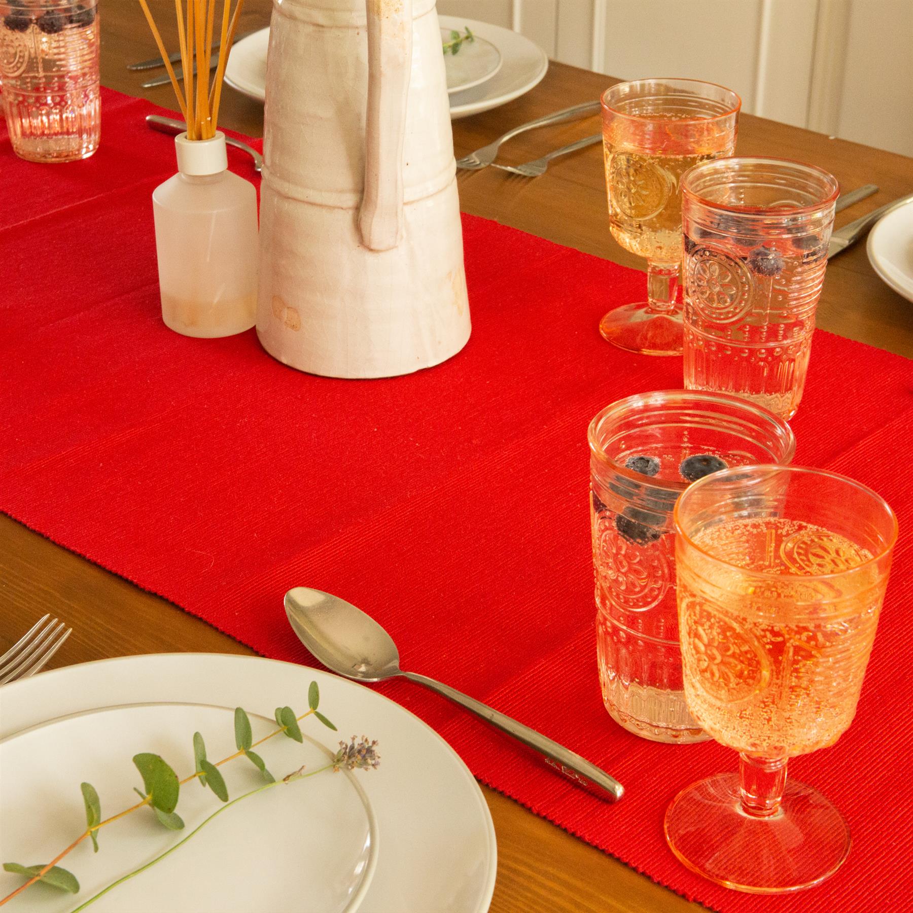 Add a splash of colour and a decorative flourish to your dining table with this Ribbed Cotton Table Runner from Nicola Spring.