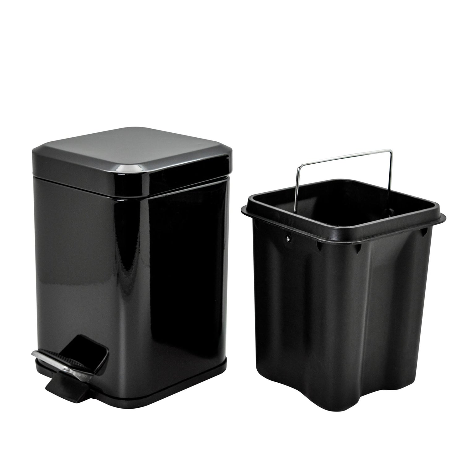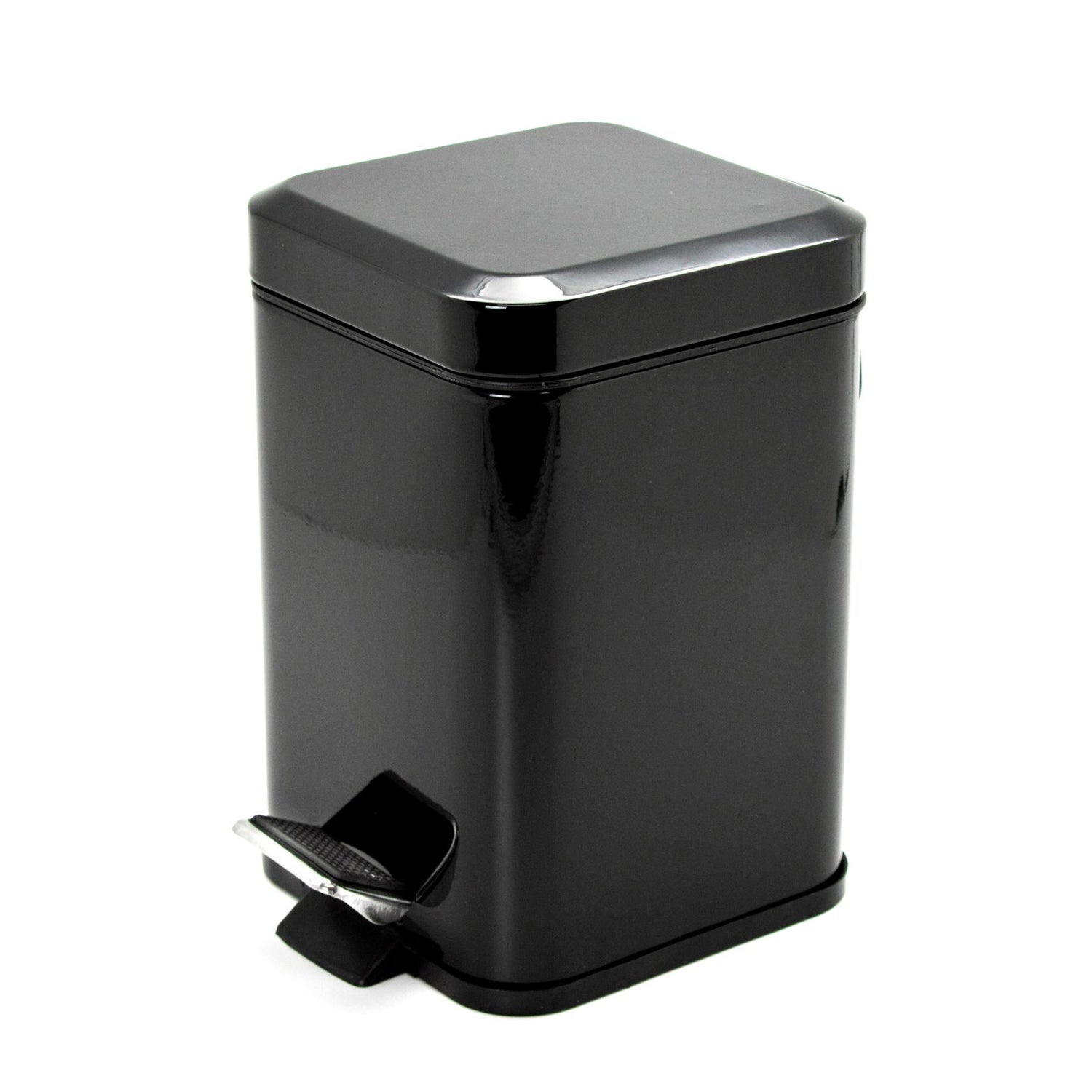 Harbour Housewares Square Steel Bathroom Pedal Bin - 3 Litres - Black