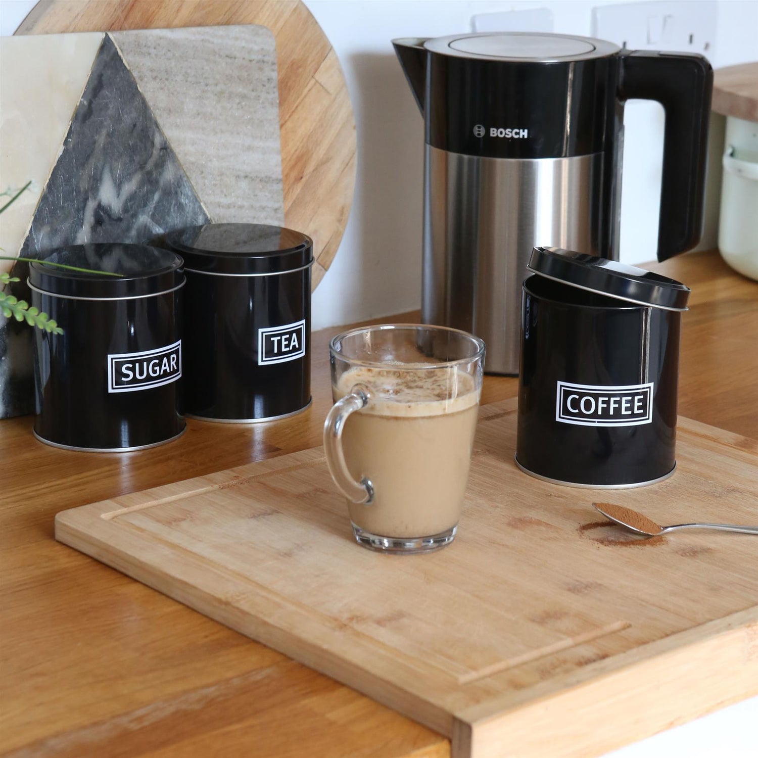 Add a spoonful of industrial chic to your kitchen tea or coffee station with this 3-piece Storage Canister Set from Harbour Housewares.